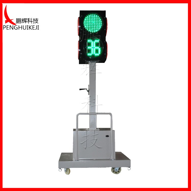 四面滿屏加倒計時信號燈,下為紅綠雙色倒計時,上為紅、黃、綠三色滿屏同屏顯示。配有可移動小車,用于應(yīng)對緊急停電及其它情況的需要。可手動升降1.8米至2.5米,內(nèi)含蓄電池,無需另接電源。配太陽能或交流220V充電,可在陰雨天下連續(xù)工作10天。